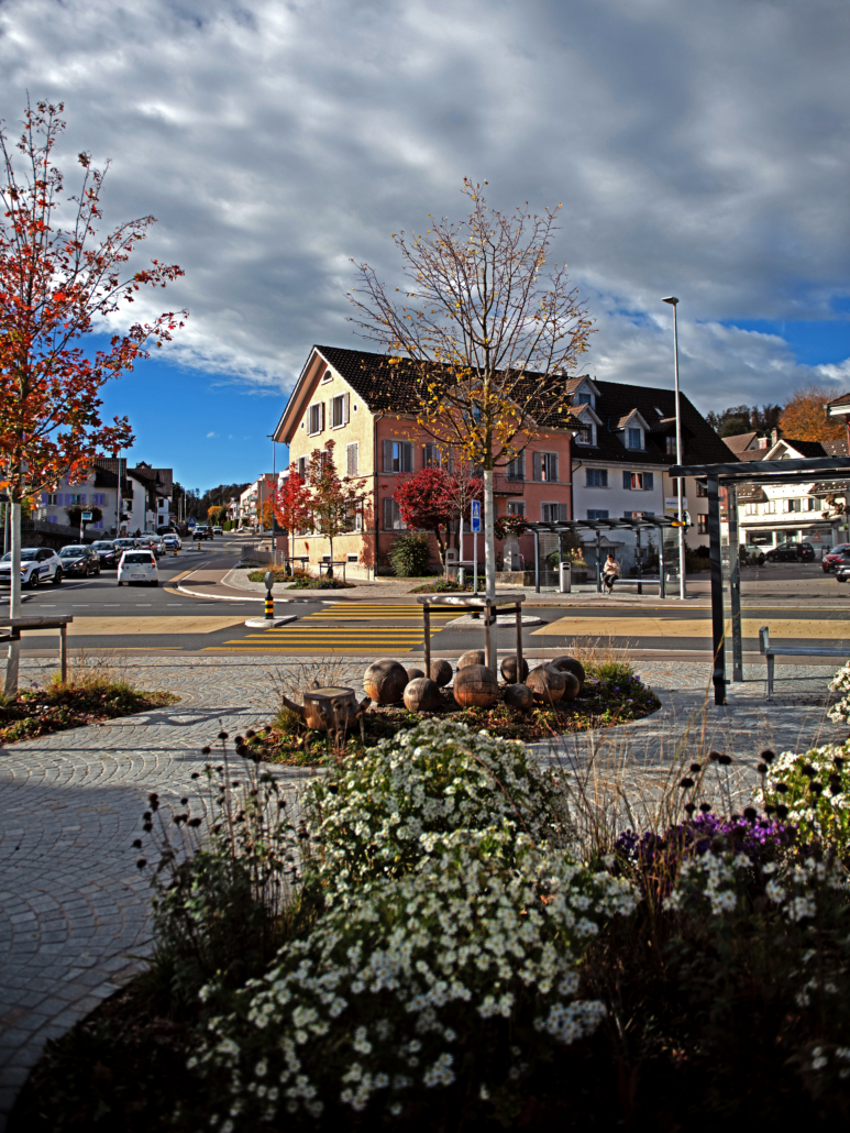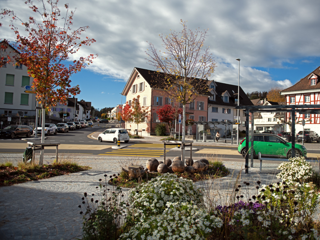 Im Herzen von Eschenbach SG entsteht ein neuer Dorfplatz, welcher durch verschiedene mit Stauden und Bäumen bepflanzten Grünflächen einen attraktiven Aufenthaltsort bietet.